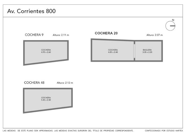 COCHERAS EN VENTA IDEAL INVERSORES Se trata de 3 cocheras, ubicadas en Av corrientes al 800, frente al Teatro Gran Rex. Una de ellas con baulera, actualmente se alquilan en de $18.000 diarios Las cocheras se venden en conjunto por eso su bajo costo de comercialización. "VALOR EN BLOQUE USD 18.000" CONSULTAR POR VENTA INDIVIDUAL UBICADAS EN EL CORAZÓN DE LA CIUDAD CON ACCESO DESDE LA 9 DE JULIO HACIA PUERTO MADERO Y ZONA PEATONAL DEL CENTRO PORTEÑO. SE ENCUENTRAN EN EL SUBSUELO DE UN APART.- ENTRADA INDEPENDIENTE EN EDIFICIO CON SEGURIDAD 24 HS. - VALOR ACTUAL DE EXPENSAS 80.000.- 3 COCHERAS CUBIERTAS EN SUBSUELOS POSESIÓN Y ESCRITURA EN EL ACTO.- MEDIDAS 4.95 X 2.60 Alto : 2.11 4.85 x 2.40 Alto: 2.07 (Baulera 3.05 x 2.20) 5.45 x 2.40 Alto: 2.12 Las medidas y superficies definitivas surgirán del título de propiedad del inmueble referido MAP PROPIEDADES. Gustavo Abad Mat. 8680 - - - Toda la información del aviso, incluyendo medidas, precio, impuestos, servicios, etc. son estimativos, sujetos a modificación y no vinculantes, según lo dispuesto en el art. 973, Cód. Civ. y Com. Toda la información del aviso, incluyendo medidas, precio, impuestos, servicios, etc. son estimativos, sujetos a modificación y no vinculantes, según lo dispuesto en el art. 973, Cód. Civ. y Com.