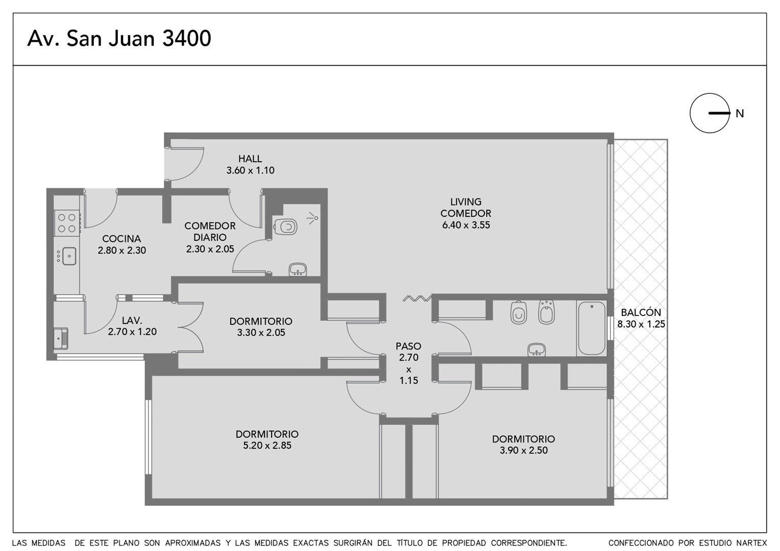 Departamento de cuatro ambientes en un quinto piso al frente, forma parte de los nueve pisos y veintisiete unidades funcionales (tres por piso) con los que cuenta el edificio, estratégicamente ubicado a ciento cincuenta metros de la estación de Subte Boedo de la línea E. Al ingresar a la unidad lo hacemos por una puerta principal blindada y nos encontramos con un living comedor de 6,40m x 3,55m. A continuación accedemos al balcón aterrazado con vista abierta de 8,30m x 1,25m. Volviendo al comedor hacia la izquierda tenemos un pasillo de distribución que nos conecta con los tres dormitorios con los que cuenta la unidad y con el baño principal completo. Si ingresamos por la puerta de servicio (también blindada) accedemos a una espaciosa cocina, con comedor diario, un lavadero independiente y una toilette. Todos los ambientes principales cuentan con ventanas al exterior, posee muy buena ventilación cruzada. El piso de los dormitorios y del living comedor es de parquet en excelente estado y el dormitorio principal cuenta además con amplio espacio de guardado y aire acondicionado. La calefacción es individual por radiadores y el agua caliente es individual por calefón. - - - - Toda la información del aviso, incluyendo medidas, precio, impuestos, servicios, etc. son estimativos, sujetos a modificación y no vinculantes, según lo dispuesto en el art. 973, Cód. Civ. y Com. Toda la información del aviso, incluyendo medidas, precio, impuestos, servicios, etc. son estimativos, sujetos a modificación y no vinculantes, según lo dispuesto en el art. 973, Cód. Civ. y Com.