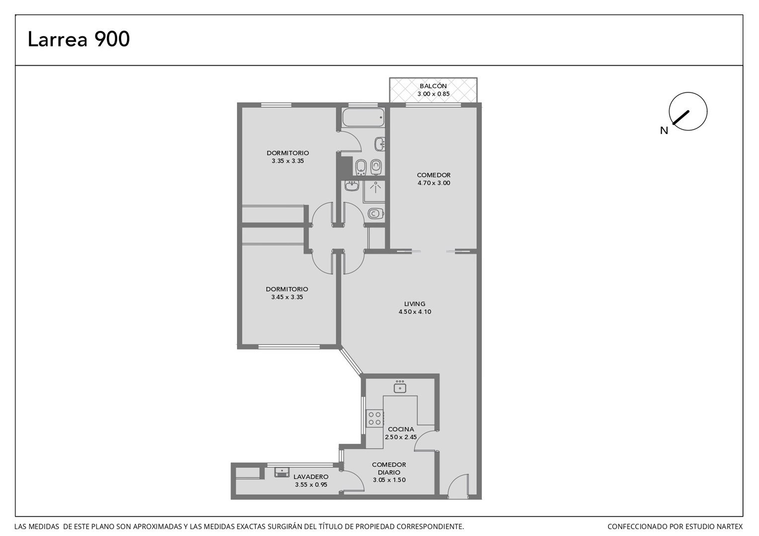 Ubicado en Larrea 900 en un quinto piso al contrafrente con orientación Este. Palier Semiprivado. Techos Altos. Reformado a nuevo cocina, baños, pisos, caños de agua y electricidad hace 15 años. El edificio tiene seis pisos y un total de diecisiete unidades funcionales. Zona de Sanatorios y Universidades a dos cuadras de Avenidas Santa Fe y Pueyrredón. El Departamento cuenta con: - Dormitorios: 2 dormitorios (principal en suite) ambos de 3x3mts aprox. con amplios placares de piso a techo. - Baños: 2 baños completos (1 es el que esta suite). - Comedor de 3x4,7. - Living de 4,5x4,1 (independiente de comedor). - Cocina con comedor diario. - Lavadero independiente. - Balcón de 3x1 hecho a nuevo con piso de PVC símil madera. - Entrada principal y de servicio. - Refrigeración y Calefacción: 4 Aires Frio/Calor y 3 Radiadores Peisa nuevos de 2021. - Ascensores: 2 - Administración del Edificio realizada por propietarios. - Expensas Agosto 23 $ 13.800 Opción de comprar cochera fija para auto en Estacionamiento 24 hs. ubicada en edificio lindero. - Cochera para auto 10,54 m2 - Seguridad 24hs - Precio de Venta U$D 24.000 (Opcional) - - - - Toda la información del aviso, incluyendo medidas, precio, impuestos, servicios, etc. son estimativos, sujetos a modificación y no vinculantes, según lo dispuesto en el art. 973, Cód. Civ. y Com. Toda la información del aviso, incluyendo medidas, precio, impuestos, servicios, etc. son estimativos, sujetos a modificación y no vinculantes, según lo dispuesto en el art. 973, Cód. Civ. y Com.